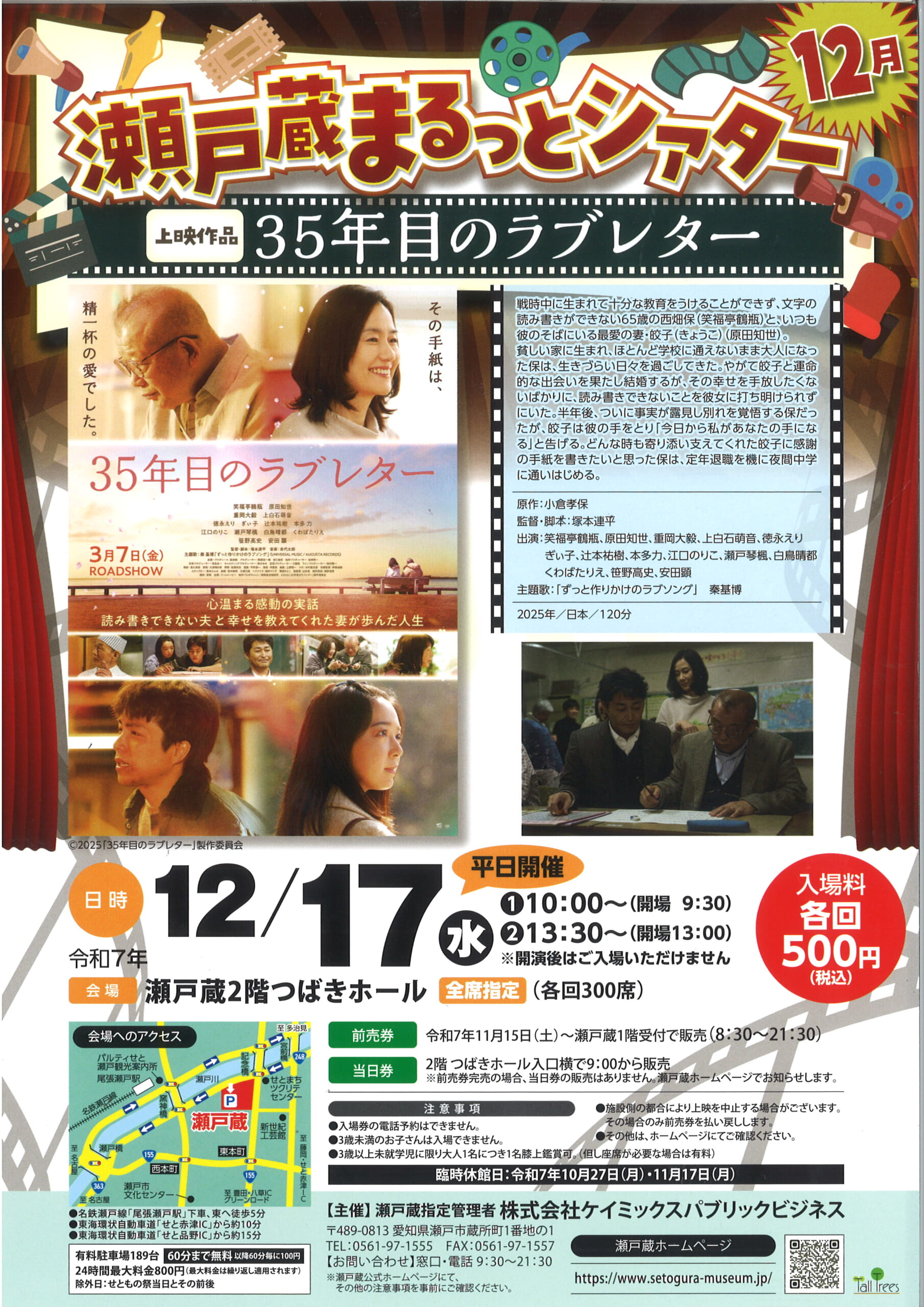 瀬戸蔵まるっとシアター12月17日(水)「35年目のラブレター」【平日開催】