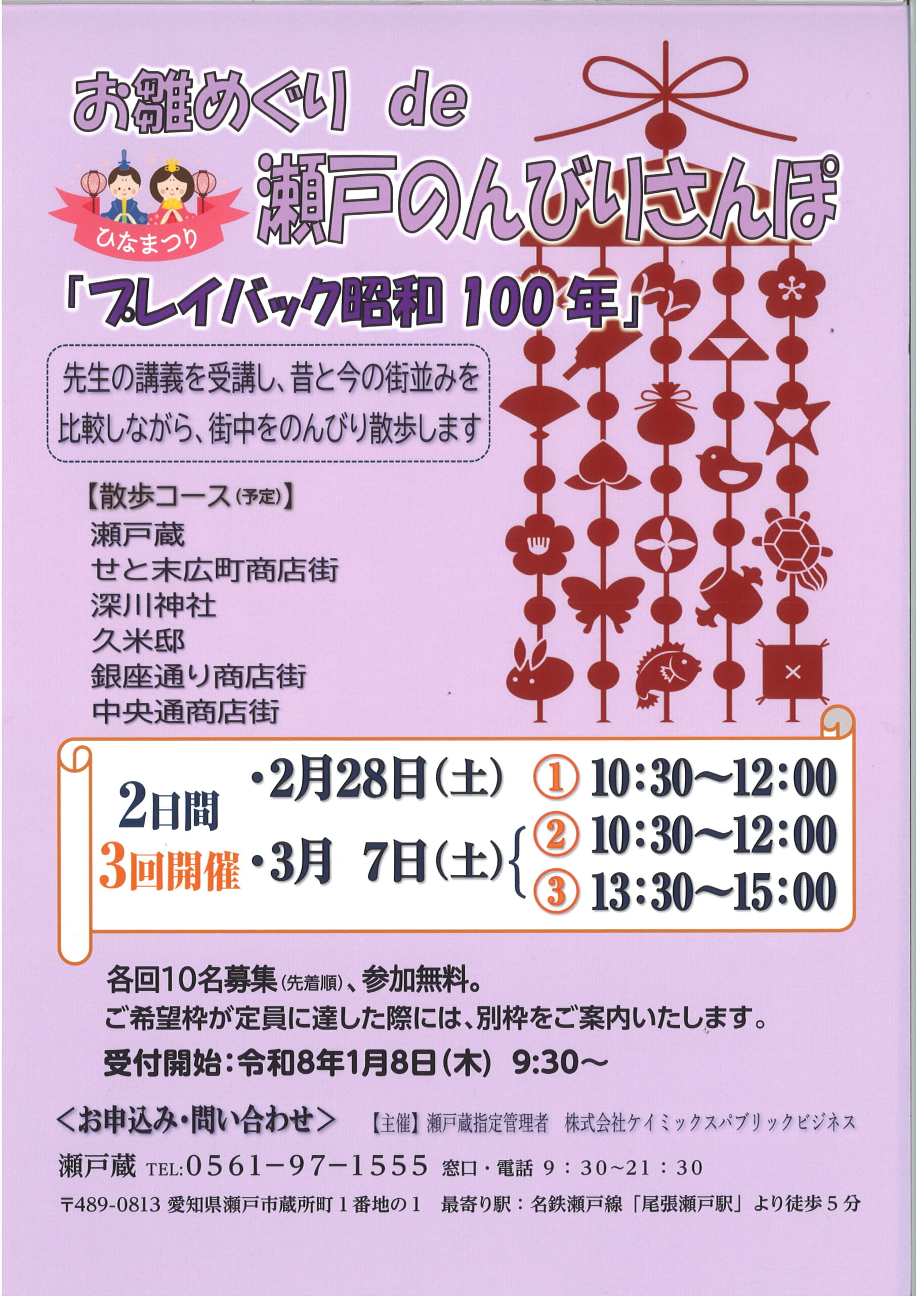お雛めぐり de 瀬戸のんびりさんぽ 2月28日(土)・3月7日(土)