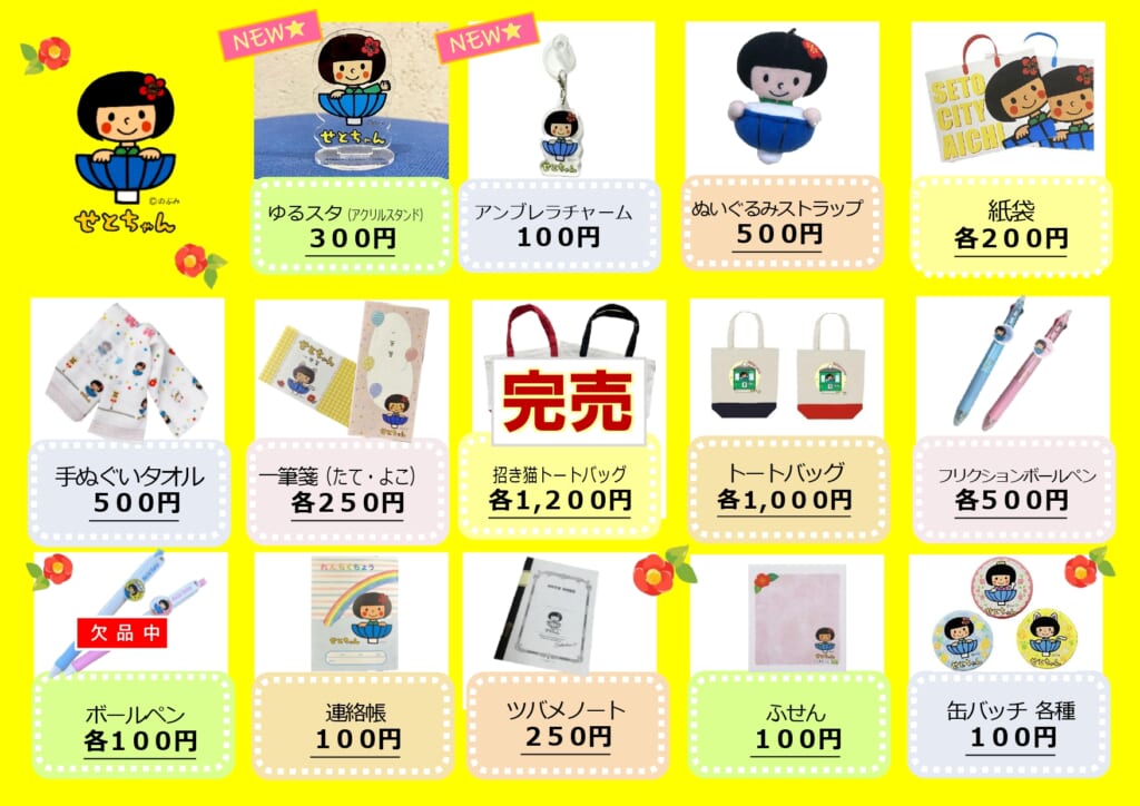 せとちゃんグッズラインナップに『せとちゃん アンブレラチャーム』が加わりました。9月27日(土)より販売開始。・せとちゃんアンブレラチャーム 100円(税込)瀬戸蔵1階受付にて販売しております。各種せとちゃんグッズも好評販売中。