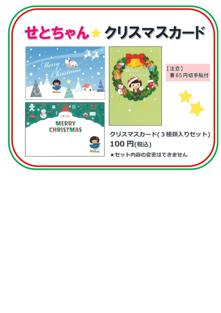せとちゃんオリジナルグッズに『クリスマスカード』が加わりました。